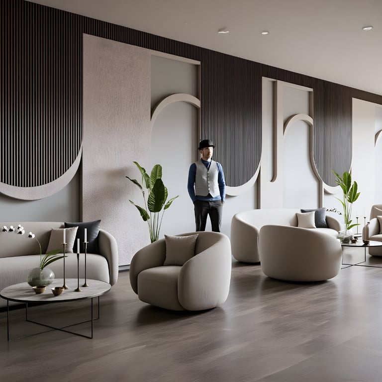 Designing luxurious feature walls with curved and layered decorative panels