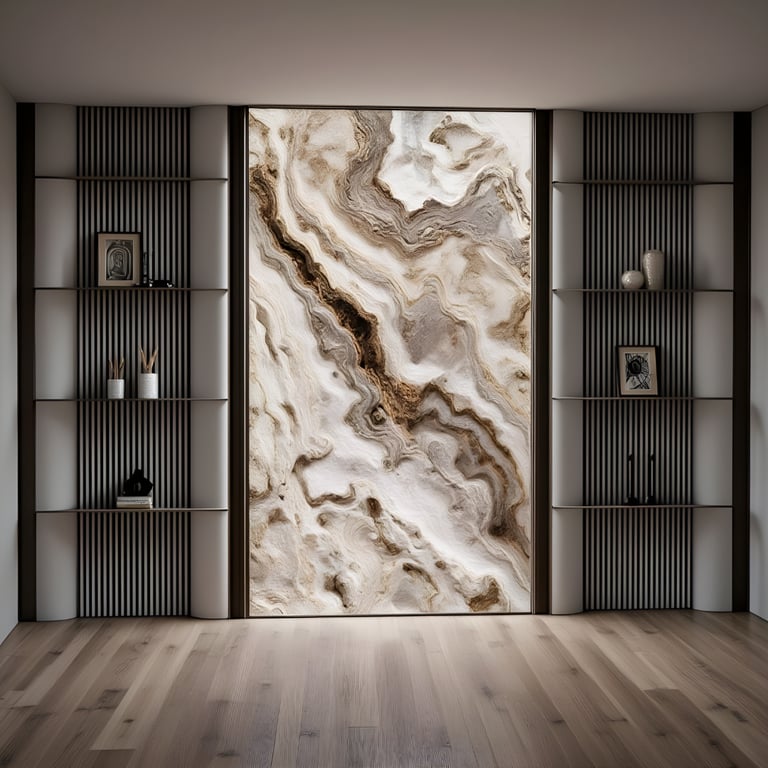 The contrast between textures gives the design a luxurious and contemporary feel, making it suitable for living rooms, offices, bedrooms, or reception areas.